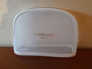 Pour vos WE, vos petits rangements ou tout autre utilisation, très jolie et très chic trousse blanche, de la marque originale GUERLAIN, marque dorée imprimée sur la trousse, fe