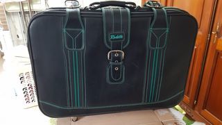 Vends une grande valise noire avec surpiqures vertes en similicuir de marque RODELLE En bon état (quelques griffures à l'extérieur) Fermeture par zip + 3 sangles et boucles A l'