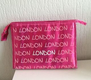 POCHETTE "LONDON" acheté à Londres couleur rose - fermeture éclair 25 cm X 19 cm environ avec 2 petites poches intérieures bon état - 4€ + frais d'envoi éventuellement