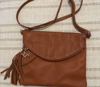 En très bon état, sac en cuire avec fermeture éclair.