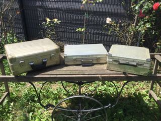 Lot de 3 valises tout en aluminium vintage vendues sans clé soit : - 1 valise de voyage vintage tout en aluminium avec coins renforcés et fermeture qui fonctionne Dimensions :