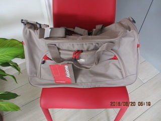Grand sac de voyage longueur 55cm hauteur 25cm devant deux grandes poches avec fermeture éclair, et une poche avec fermeture éclair de chaque coté, dessus fermeture éclair, anses a