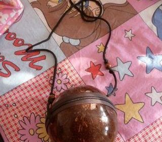 bonjour, je vous propose depuis mon armoire : * Sac en noix de coco véritable ramené de Martinique. D=15cm sans la lanière. Neuf, maison non fumer. Frais de port inc