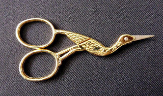 Paire de Ciseaux en forme d'oiseau (Echassier ou Cigogne) - Travaillé et doré Jolie paire de ciseaux, finement ciselée et en forme d'oiseau (Echassier ou peut-être Cigogne ...