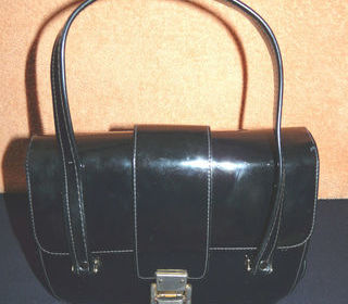 Sac à Main en Cuir Noir brillant du tout début des années 1960 - Superbe Etat (Vintage) Ce petit sac à main nous vient directement du début des années 1960. Il avait alors ét