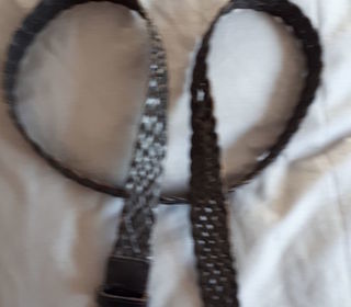Ceintures cuir tressées en bon état : 1 noire longueur total 120 cms, attache libre entre 100 et 115 cms 1 couleur cuir naturel 120 cms, attache libre entre 100 et 115 cms Pr