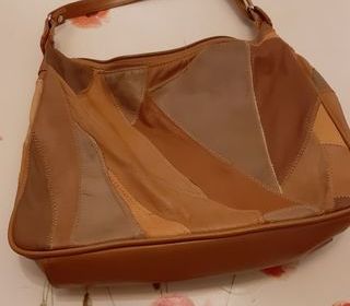 sac fourre tout à bandoulière marron Clair 3 pochettes devant et une intérieure bandoulière