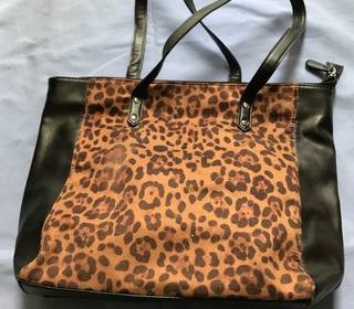 sac assez large, sur le devant plaque de simili cuir empreinte d'animaux les cotés sont NOIR en PVC intérieur entièrement doublé, poche avec fermeture éclair et de l'autre coté de