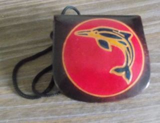 beau petit porte monnaie en cuir souple Genuine Leather made in China dessin de dauphin des 2 côtés avec cordelette pour mettre autour du cou