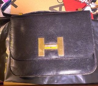 Hemes années 60 sac Constance en lézard bleu marine 20x10cm Minuscule défaut du clip magnétique fereture. A réparer en 3 m chez coordonnier
