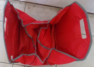 Bel organisateur de courses 3 compartiments et 1 pochette extérieur rouge et gris pliable à scratch et poignée de transport