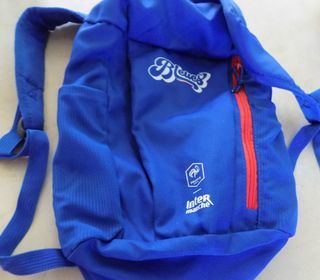 Beau petit sac à dos bleu supporter l'équipe de France féminine de Football les bleues de chez Intermarché