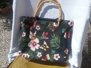 Sac noir fleurs brodés perles. Très bon état. Anses en bambou.