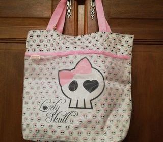 Sac à main synthétique convient pour jeune fille création CHAUSSEA "LOVELY SKULL" Porté épaule et main 2 grandes poches devant transparentes 1 grande poche intérieure + 1