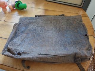 Cartable vintage en toile marron, en l'état, années 30 - Longueur : 41,5 cm - hauteur : 30 cm - Profondeur : 12 cm Pour voir d'autres cartables vintage en toile ou en cuir, tapez