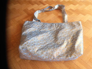 Très joli sac réversible, fait par un artisan. Il est bleu et doré d'un coté, dans un magnifique tissu soyeux et travaillé, les fils dorés sont brodés sur le tissu, il est en s