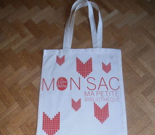Mon sac "Ma petite bibliothèque", de la marque originale Le Livre de Poche, de couleur beige, avec motif rouge sur le devant, dos uni. Dimensions : - largeur : 36 cm, - hau
