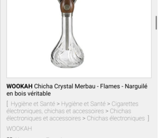 Bonjour, je vend ma chicha qui est en très bonne état et connu pour ses vases de toute splendeur en Crystal . Je l'a vend pour en racheter une encore plus magistral étant collectio