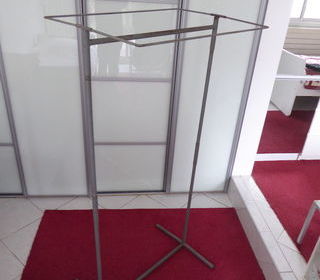 Ce portant triple est robuste Hauteur réglable d'une hauteur de 83 cm ou 142 cm maximum Largeur du socle 50 cm Longueur de la barre 70 cm Espacement entre chaque barre haute