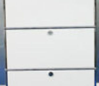 Vend une colonne blanche ou bien gris ultra clair de marque usm haller de 5 cases en hauteur avec en bas 1 porte coulissante et 4 portes abattantes pour le reste du meuble dont les