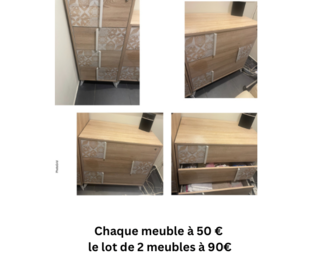2 commodes , lot de 2 commodes : 90€ -une colonne 4 tiroirs dont le 1ere ferme à clef a 50€ -Une 2 eme commode grand arrangement serviette, linge, draps ?. 3 grand tiroirs dont l