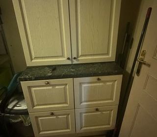 Vends meuble bas de cuisine en Formica bien avec 2 tiroirs et 2 portes sans cloison intérieur. - Type de produit : Meuble bas de cuisine - Matériau : Formica - Couleur : blanc a
