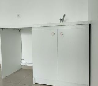 Je vends un lot d'éléments pour kitchenette à monter comprenant un 1 évier STRADOUR encastrable avec 2 bacs (1 grand et 1 petit + bondes) en résine blanche avec égouttoir, un miti