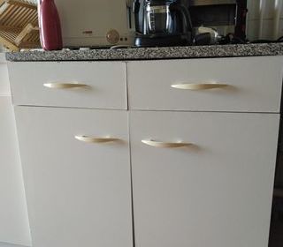 Vends élément de cuisine à 2 portes et 2 tiroirs, deux étagères avec sa table de travail. Largeur totale : 120,5 cm, sans table de travail : 80,5 cm Hauteur : 85 cm, profondeur :