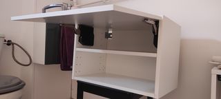 A vendre : Élément mural horizontal, blanc avec portes et poignées,avec mécanisme de fermeture avec amortisseur incl. Larg 60 X Prof 38 X Haut 40 Prix : 100 € lès deux