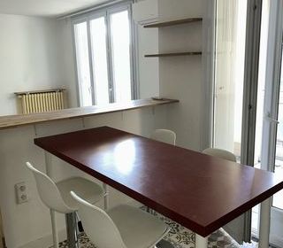 Table repliable, 6 places, nécessite d'être repeinte. Longueur : 1.30m ; largeur : 1m, hauteur : 90cm.