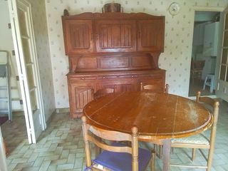 Buffet en bois avec table ronde en bois et chaises