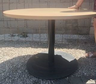 Table ronde avec pied central lesté, très stable. Idéale pour salle à manger, cuisine, bureau ou terrasse abritée. Plateau diamètre 100 cm Hauteur réglable (min. 65 cm, peut m