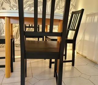 Je vends 4 chaises noires en bois de marque IKEA. Très bon état Solides et stables Style simple et intemporel, idéal pour une cuisine ou une salle à manger Visible quartier E