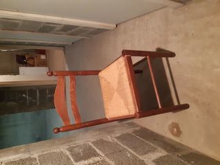 quatres chaises de cuisine en bois verni assises en paille amovible