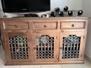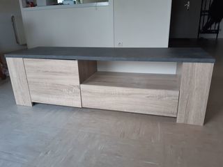 Salle à manger complète composée d'un meuble TV, un petit meuble bas , un bahut, une table basse avec tiroirs coulissants pour range bouteilles et tiroir et d'un secrétaire. L'ense