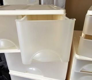 *****sur photos : n'avons pas enlevé les pellicules bleues de protection sur les 2 façades ? Meuble entièrement blanc***** Cause erreur cotes cuisine vendons meuble BLANC entièr