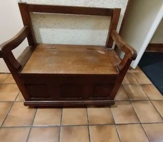 Je vends ce banc coffre en chêne massif. - Type de produit : Banc coffre 70 cm de large 45 cm de profondeur - Matériau : Chêne massif - Fonctionnalités : Coffre de rangement int