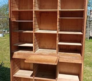 Dans son jus : armoire de rangement à volets (l un a été réparé) . Quelques endroits abîmés Hauteur 225 largeur 120 profondeur 40 cm À récupérer sur place