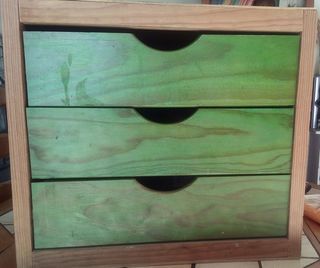 e vends ce cube de rangement en bois avec 3 tiroirs. - Type de produit : Meuble de rangement - Dimensions : 43cm (h) x 42cm (L) x 34cm (p) - Nombre de tiroirs : 3 - Matériau :