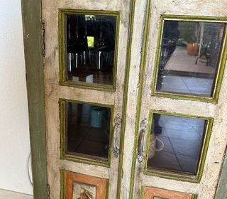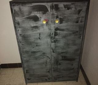Meuble de rangement avec 5 étagères. La couleur d'origine est bordeaux (voir photo), mais j'ai peint juste l'avant du meuble (noir/gris). La peinture commence à s'écailler à un en