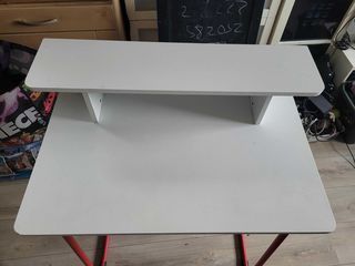 à€ vendre : petit bureau compact 80à-50 cm Bureau blanc avec pieds rouges, équipé d'une tablette pratique pour optimiser le rangement. Format idéal pour petits espaces, chambres d'