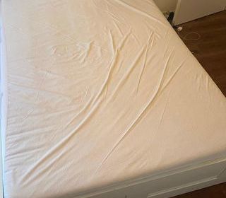 Je vends ce cadre de lit BRIMNES d'IKEA avec rangement, en blanc et avec sommier inclus, de dimensions 140x200 cm. - Type de produit : Cadre de lit avec rangement - Marque : IKEA