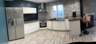 cuisine équipée Schmidt modèle arcos 2010 très bon état surface brillante, matière stratifié façade épaisseur 19 mm avec chant épais caissons gris alu plan de travail strat