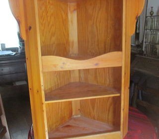 Meuble de coin en bois, ouvert, pour rangements (ou pour présenter des décorations) Hauteur 95,3 cm Largeur maximale du plateau au-dessus : 83 Profondeur maximale du plateau :