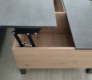 Table basse plateau redevable . Imitation béton/chêne avec 2 espaces de rangement sous le plateau. L103 x H.42 X P 67 cm Poids 31 Kg montage déjà fait A venir à chercher sur si