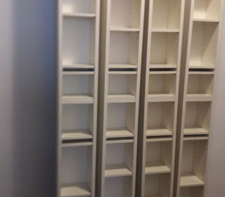 Penderie de couleur noir mate, avec housse pour penderie couleur écru et inclus des boîtes de rangements Les dimensions d'une penderie : L : 110 cm H : 170 cm Prd : 40cm