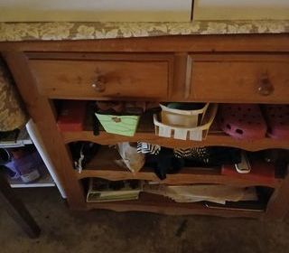 VENDS PETIT MEUBLE DE RANGEMENT COMPORTANT 2 PORTES AVEC 4 TIROIRS ET 2 ETAGERES DIMENSIONS : LONGUEUR : 1.07 M PROFONDEUR : 0.34 M HAUTEUR : 0.74 M