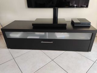 Meuble TV multimédia Bo Concept (Design Danois) modèle OCCA en bon état général Teinte chêne noir Grand tiroir coulissant avec 2 étages pour un meilleur rangement. Verre dépoli