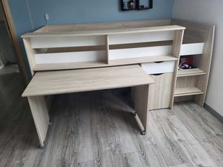 Créez une ambiance moderne et chaleureuse dans la chambre de votre petit grâce au lit combiné de coloris chêne relief de dimension 120x200cm.Idéal pour un jeune adolescent, il comb