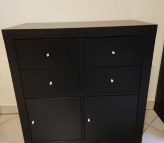 Meuble de rangement (4 cases) Expedit brun noir de chez IKEA en bon état général Inclus 4 tiroirs et 2 portes battantes noires. Maison non fumeur Pas de livraison A venir che